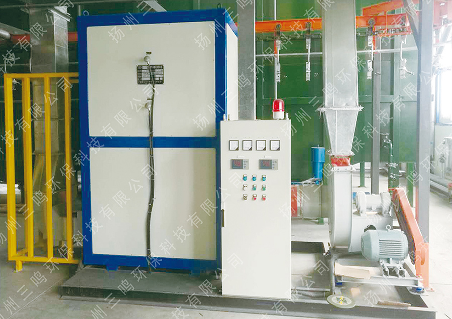 本裝置是利用催化劑做中間體,使有機(jī)氣體在較低的溫度下發(fā)生氧化反應(yīng),變成無害的水和二氧化碳,同時(shí)釋放出能量,通過能量回收裝置回收產(chǎn)生的熱能,達(dá)到節(jié)能、高效。